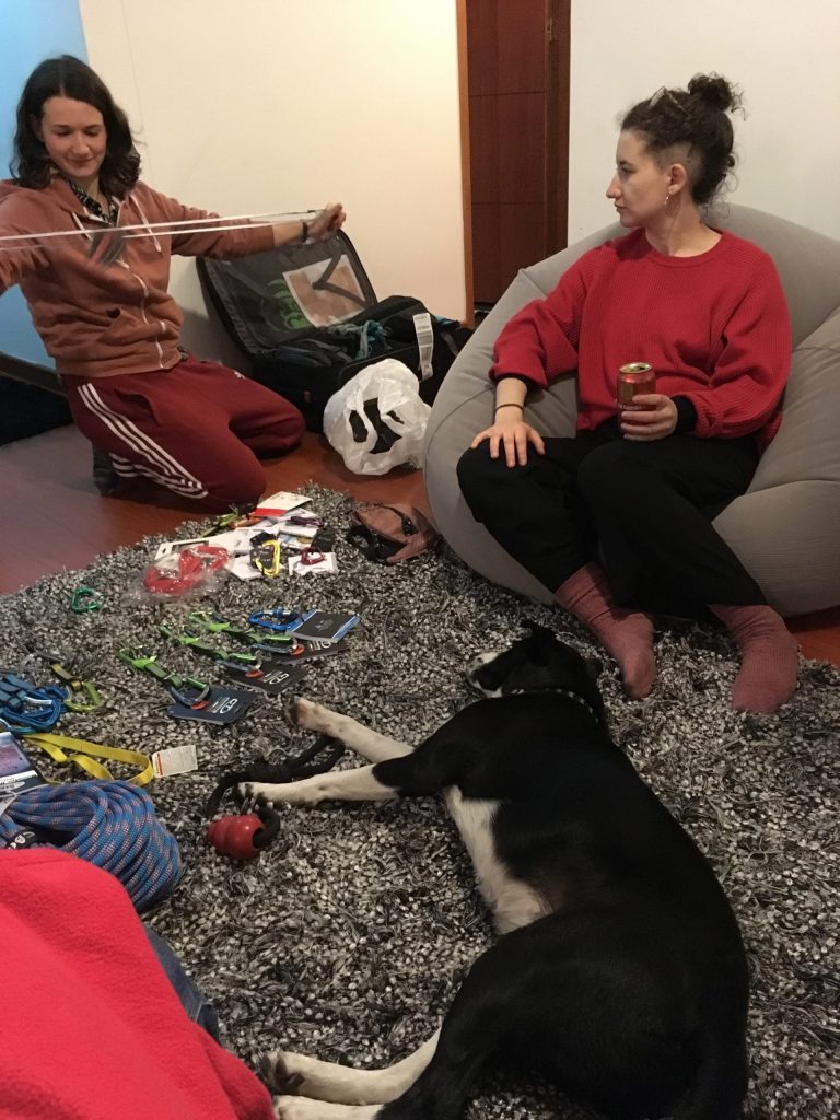 Jetzt sitzen wir mit nem Bierle bei Sarah die unsere Kletterzeuglieferung begutachtet und stellen uns auf kolumbianische Zeit um, d.h. sich zwingen bis 22:00 (also 5:00 deutscher Zeit) aufbleiben.