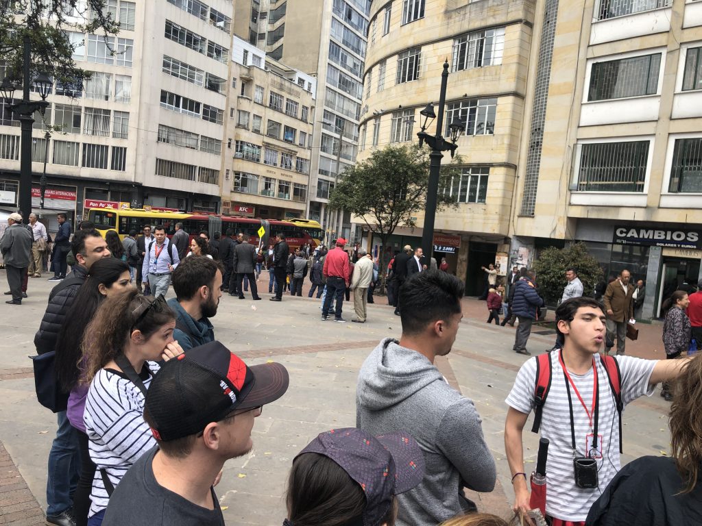 Was echt witzig ist: es gibt da einen Platz wo lauter Grüppchen von 2..3..4 Leuten rumstehen, ihr seht die im folgenden Foto im Hintergrund. Das sind Smaragdhändler. Kolumbien ist Weltweit die #1 bei der Smaragdschürfung und aufgrund von Tradition, Historie, man-kennt-sich und für uns intransparenten Regeln findet der Smaragdhandel auf diesem (und nur diesem) Platz steuerfrei statt.