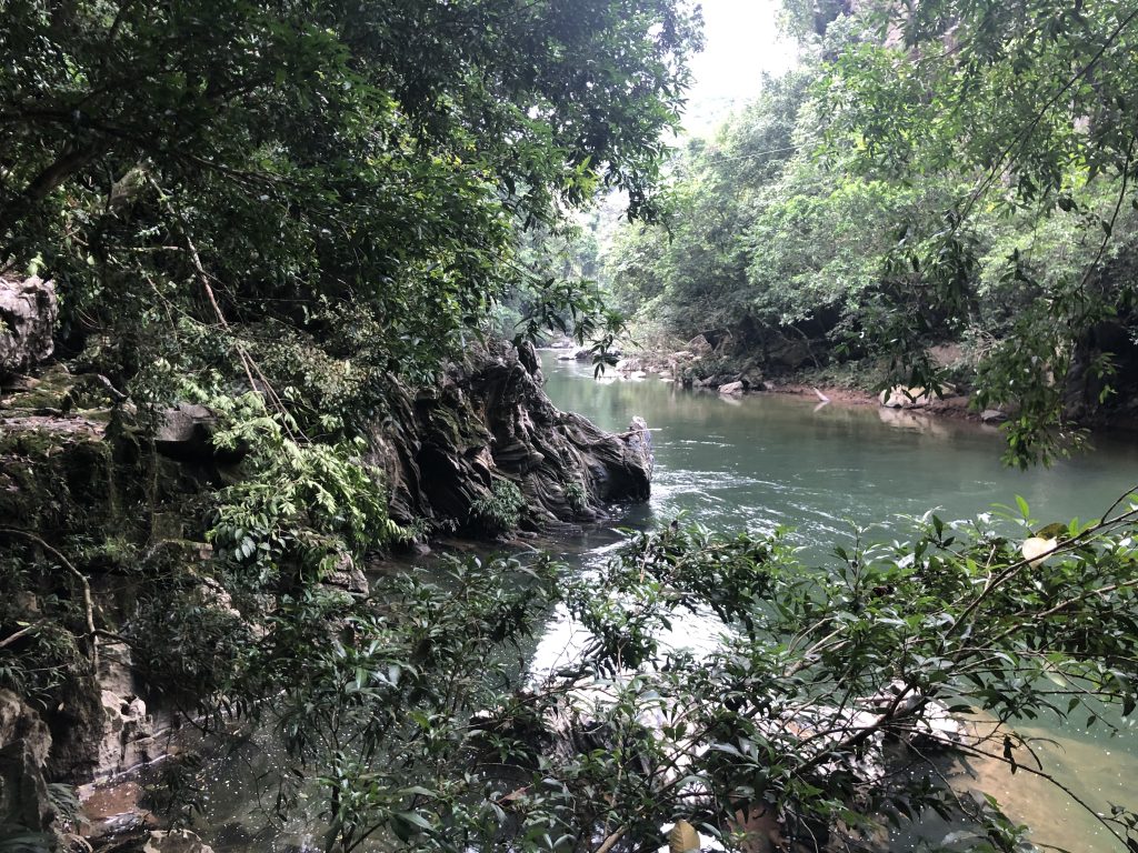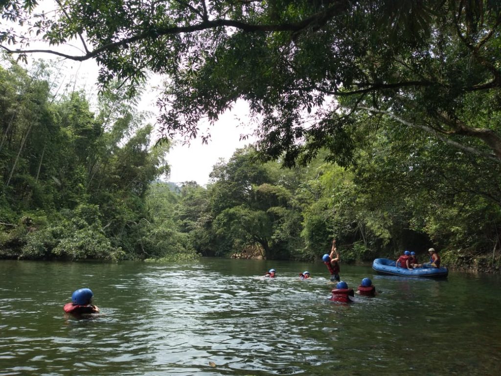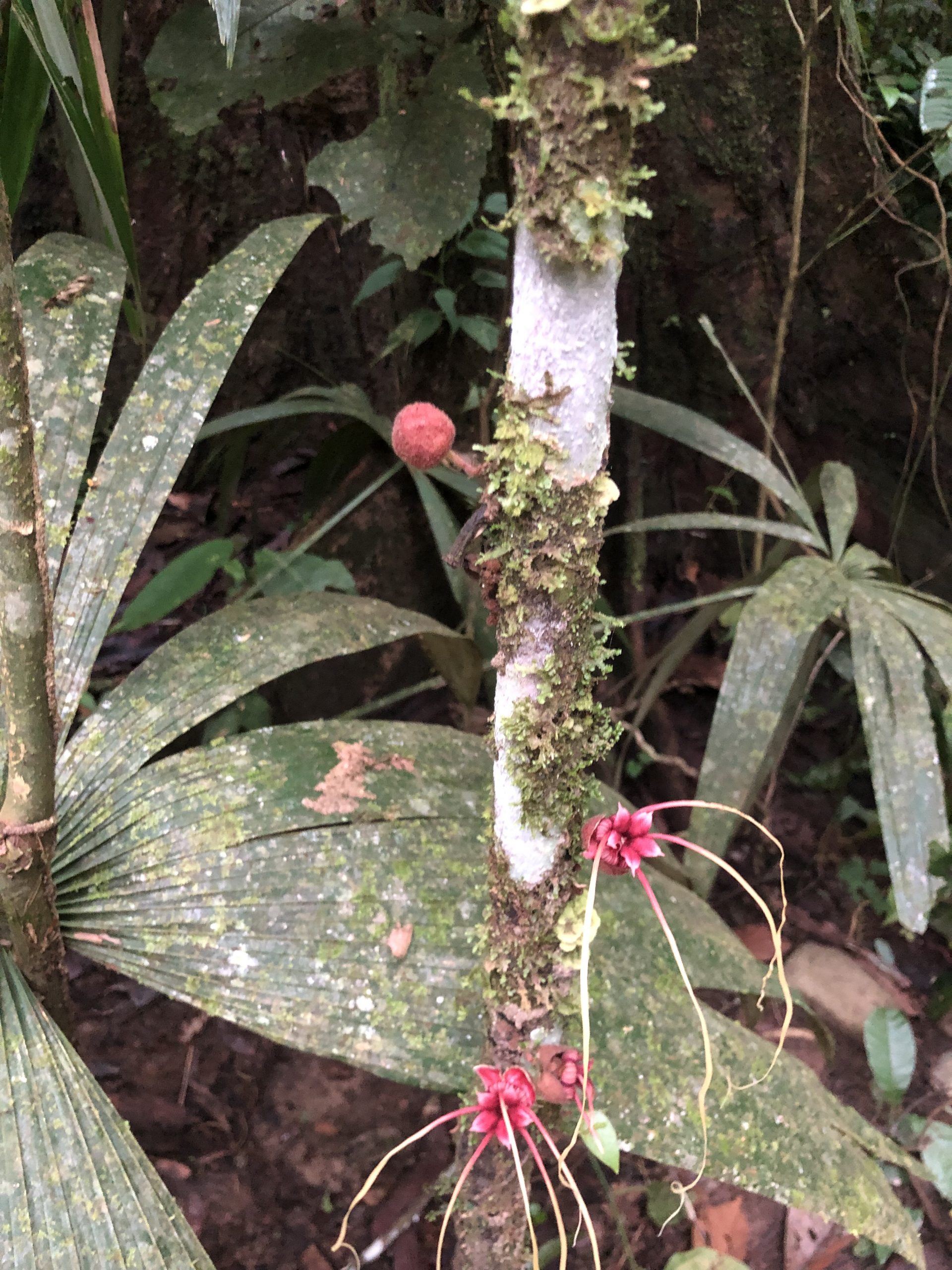 Und vom nächsten Teil habe ich keine Fotos. Wir sind 20 Minuten am Rio Claro entlang gewandert. Dann war auf der anderen Seite ein Ausgang einer Höhle, so in 10 m Höhe über dem Wasser, wo ein Bächle als Wasserfall rauskam. Wir sind noch 200 m weiter, dann über eine Hängebrücke auf die andere Seite. Und hier 1 Stunde durch den Urwald auf die andere Seite des Berges. 10 m hohe Farne, irre Pflanzen, natürlich immer die Geräuschkulisse des Dschungels. Wir erreichten auf der anderen Bergseite einen Eingang der Höhle die wir vorhin sahen. Und jetzt Stirnlampen an und ab in die Höhle. Zu Anfang 4 m breit, 15 m hoch, zu Anfang trocken, dann knietief im Wasser. Der Berg ist aus Marmor, d.h die Höhlenwände sind helles, ganz glattes Gestein. Nach 10 Minuten kamen wir dann zu einem Bereich wo Guacharoswo, eine bestimmte Vogelsorte tagsüber schläft und nachts dann zum Futtersuchen rausgeht. Die machen Clickgeräusche wenn sie sich normal verständigen und fauchen wenn sie was zu motzen haben. Meist haben Sie gefaucht. Nach 20 Minuten kamen wir zu einer grossen Kammer, 20 m Durchmesser, 20 m hoch. Ab hier wurde es dann noch interessanter. Die Höhle wurde immer enger, es ging hoch und runter, teilweise war das Wasser so tief dass man schwimmen musste. An manchen stellen musste man ein paar Meter runterrutschen (immer im Wasser), oder 2 Meter runterspringen in ein Becken von ca. 3m Durchmesser. Daher könnten wir keine Fotos/Mobiltelefone mitnehmen. Weitere 10 Minuten später war die Höhle immer noch eng und verwinkelt, aber ein paar Meter hoch. Und hier waren über die nächsten paar hundert Meter ganz viele von diesen Guacharos und alle haben gefaucht. Das war schon etwas scary, der Marmor war voller Vogelkacke und das Wasser in was wir ab und zu auch wieder eintauchen mussten hat danach gerochen. Nach weiteren 10 Minuten kam dann plötzlich, als wir um eine Ecke kamen, das Tageslicht und der Höhlenausgang. Das war ein super Gefühl nach 45 Minuten Dunkelheit und Gefauche. Wir haben uns dann an einer Strickleiter im Wasserfall hinuntergehangelt, und sind dann durch den Rio Claro zurück auf die andere Seite. Das war eine super Tour, echt intensiv und man musste sich auch mal überwinden so eine Marmorrutsche im rauschenden Wasser runterzurutschen ohne zu wissen was unten ist. Aber unser Guide hat uns immer gut instruiert. Wir sind mal gespannt ob man das noch toppen kann diesen Urlaub.