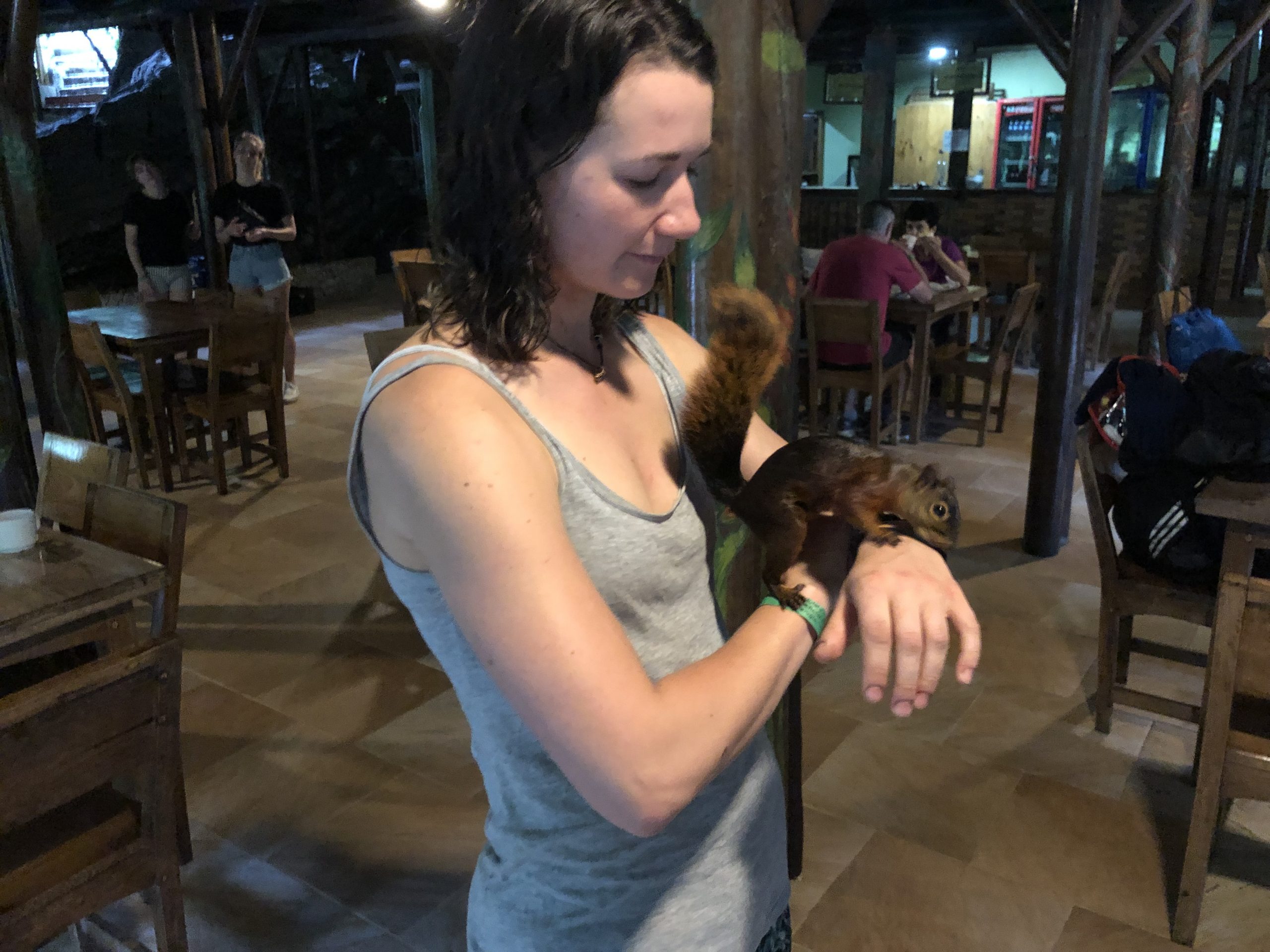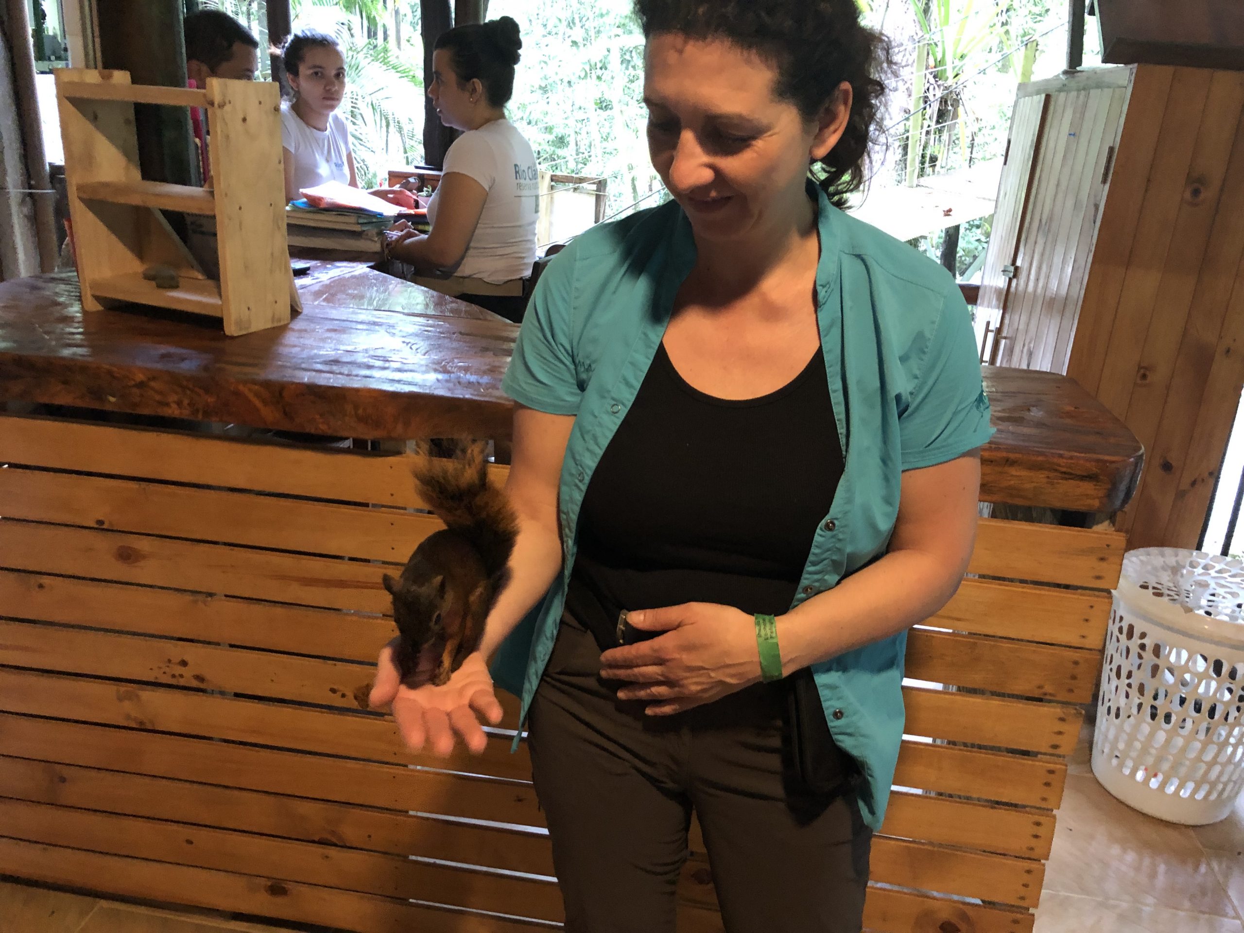 Juan, der Besitzer hatte mal vor Jahren ein domestiziertes Eichhörnchen zum Auswildern bekommen. Das liess sich aber nicht komplett auswildern und kam nach längerer Zeit mal wieder vorbei. Juan hat das dann bei uns abgeladen.